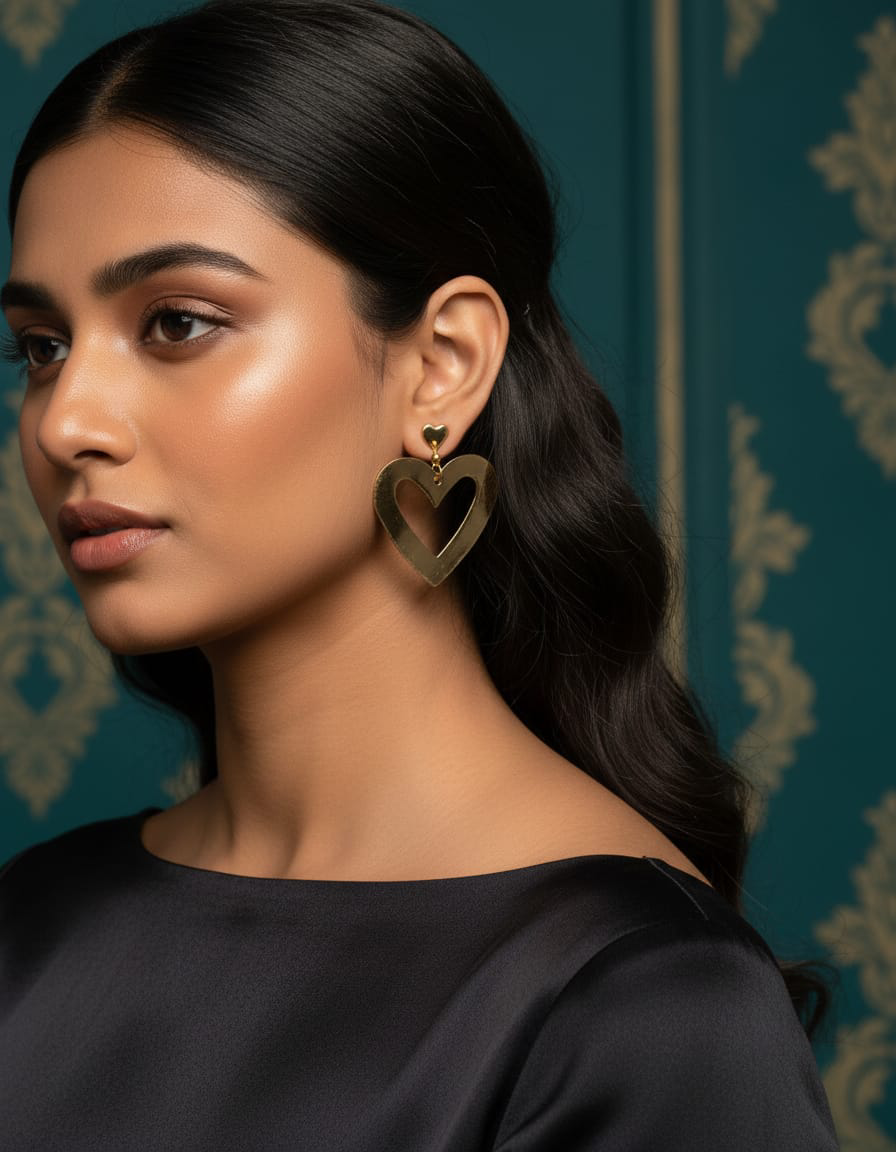 Make a stylish statement with these beautifully crafted golden heart drop earrings. Featuring a modern heart-shaped design with a smooth and shiny finish, these earrings add charm and sophistication to any outfit.