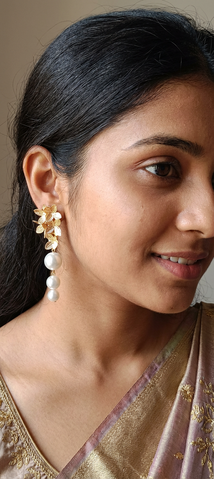 Golden Leaf Pearl Drop EarringsGolden Leaf Pearl Drop Earrings